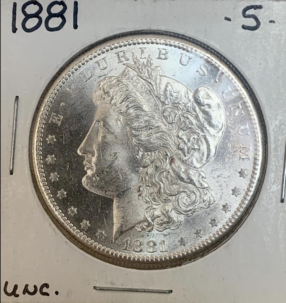 Year: 1881Grade: Choice BUStrike Type: BusinessDenomination: $1.00Mint Location: "S" - San FranciscoMetal Content: 0.7734 troy ozPurity: .900Manufacturer: US MintThickness: 3.1 mmDiameter: 38.1 mm