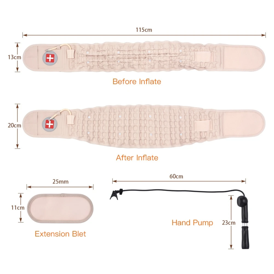 The Decompression Belt is not just a regular back support belt. It's used by doctors and back specialists during visits. When it is inflated, it increases in height by 4 inches (7.5 cm). The belt cradles the hip and the lower rib cage, it helps lift your upper body, unloading the weight off the lower back and allowing the muscles to relax. In doing so, the belt helps decrease pressure on your back, stretches tight muscles, and decompresses the discs. Less pressure means less pain.