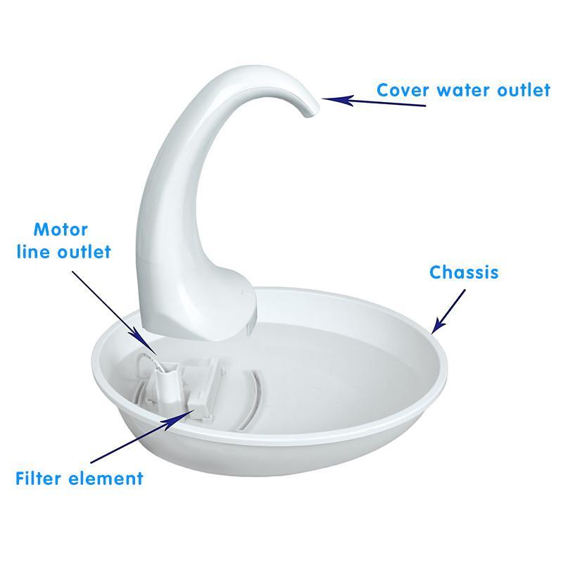 Note: For optimal performance, clean the fountain once a week, change the filter and disassemble/clean the pump once a month.